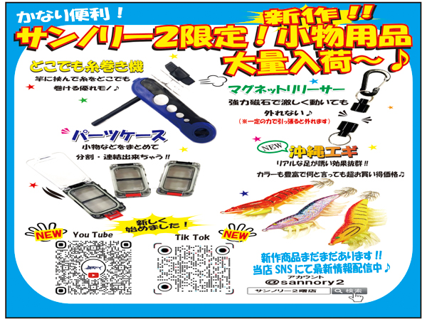 小物用品大量入荷! 2025.01.18 商品入荷 コメント: 0 ECOオモリ入荷! 新作ラジアルチェストハイウェダー入荷! 関連記事一覧 新作 厚手素材ラジアルチェストハイウェダー入荷! 2025.01.18 新作ラジアルチェストハイウェダー入荷! 2025.01.18 お待たせしました!アルビノタマン再入荷! 2025.02.23