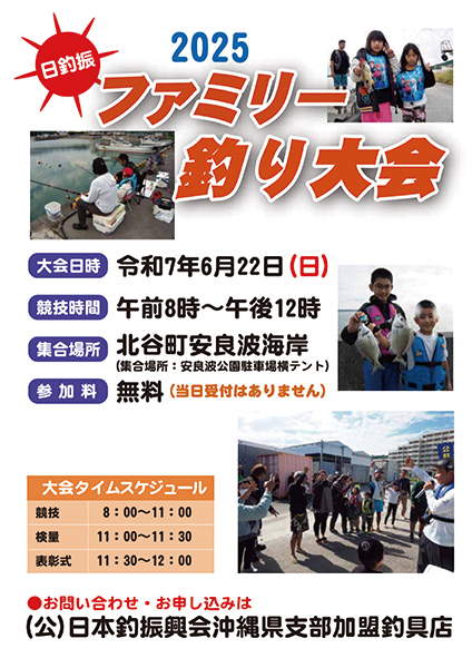 2025日釣振ファミリー釣り大会参加者募集中! 2025.06.09 参加費無料!サンノリー2で受付中です。6/18締切。 くわしくはスタッフまで。 イベント, お知らせ, ファミリー釣り大会 コメント: 0 釣果情報 タマン 釣果情報 タマン 関連記事一覧 エギングダービー2025 2024.11.20 エギングダービー参加者募集中! 2025.12.01 サンノリー2 オータムフェアー開催中! 2025.09.12 サンノリー2曙店 11月のお買い得品! 2025.11.01 Fishmanロッド大展示会開催のお知らせ 2025.07.08 8/24(日)一日限定!沖縄尚学優勝記念セール! 2025.08.24 年末大感謝祭開催中! 2025.12.04 20%OFF 2024.11.21